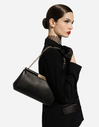 Iconic and timeless, this new large Marlene bag comes entirely in soft nappa leather with a chain strap. Large Marlene bag in nappa leather: • Black • Chain strap • Light gold-plated turn-lock fastening • Satin lining and flat pocket • Item comes with a branded dust bag • Measurements: H11.5 x W19 x D4.5 cm • Made in Italy External composition: 100% Lambskin Internal composition: 60% Viscose 40% Silk