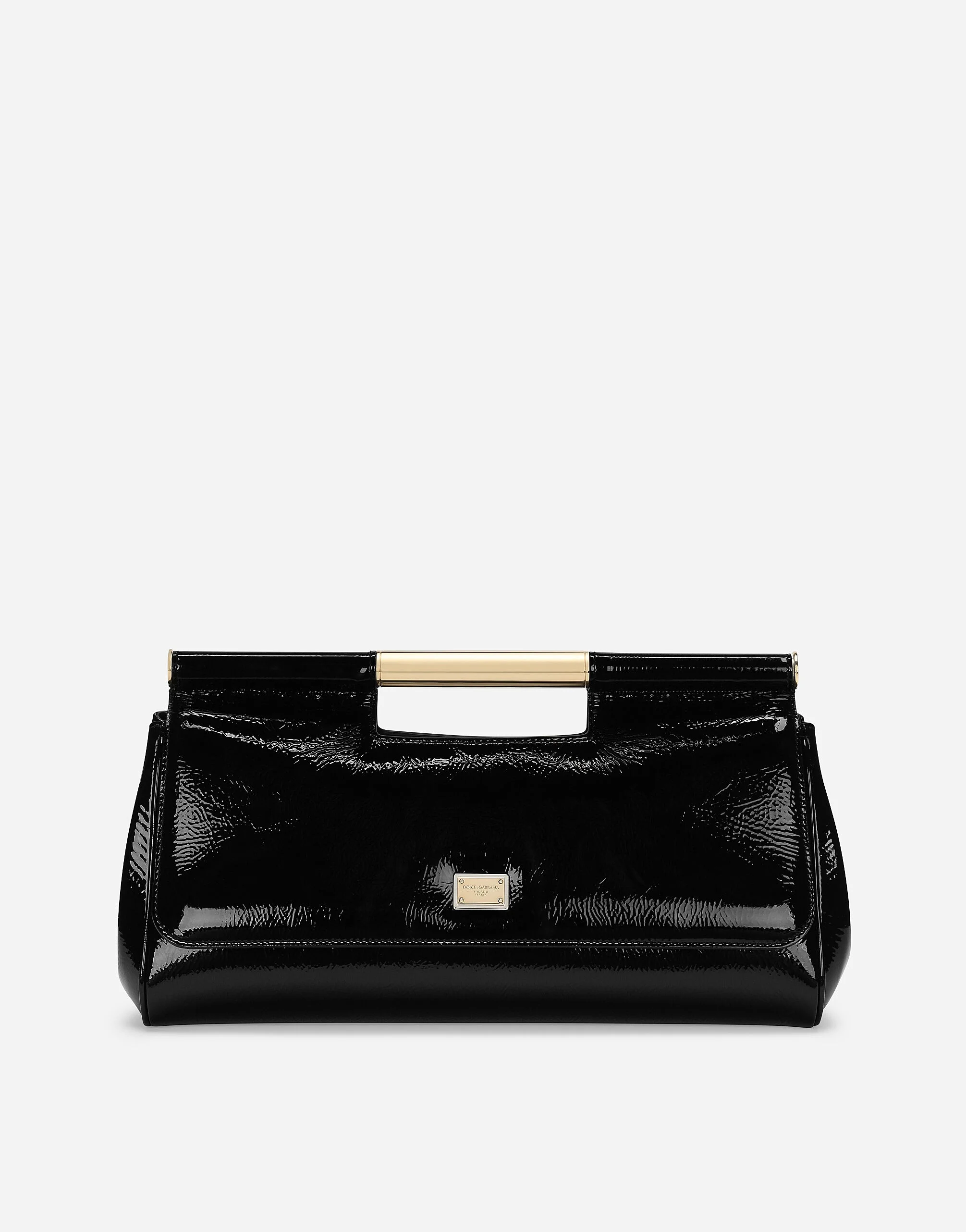The brand icon par excellence, the Sicily bag is coming in a new clutch version. Crafted from naplack, it comes with the branded tag featuring two metal-plated finishes. Large naplack Sicily clutch bag: • Black • Front flap with hidden double magnetic fastening • Logo tag featuring two metal plated finishes • Light gold-plated top handle • Printed fabric lining • Inner pocket with branded zip, a flat pocket and a card slot compartment • Item comes with a branded dust bag • Measurements: H18.5 x W34 x D10 cm • Made in Italy External composition: 100% Calfskin Internal composition: 70% Cotton 30% Calfskin