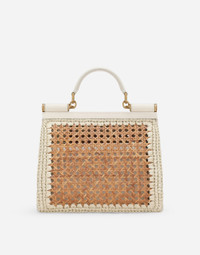 A brand icon, this practical and compact Sicily bag is perfect for carrying your essentials with you. Coming in Vienna straw with crochet raffia details, it features an adjustable, detachable crossbody strap in calfskin and is embellished with a branded tag featuring two metal plating finishes. Large raffia crochet and Vienna straw Sicily handbag: • Beige • Front flap with button fastening • Branded tag featuring two metal plated finishes • Top handle and adjustable, detachable strap in calfskin • Detachable inner pouch with calfskin card slot compartment • Metal feet studs on the base • Item comes with a branded dust bag • Measurements: H21 x W25 x D12 cm • Made in Italy External composition: 50% Rattan 30% Viscose 20% Calfskin Internal composition: 90% Cotton 10% Calfskin