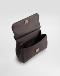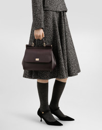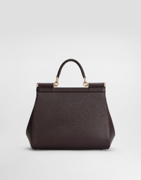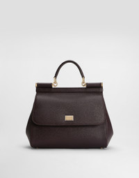 The brand icon par excellence this large Sicily bag comes in Dauphine calfskin. Understated and feminine it comes with the logo tag featuring two metal plating finishes. Large handbag from the Sicily line in Dauphine leather. • Front flap with hidden snap closure and galvanic logo plate in the front • Top handle and adjustable and removable leather shoulder strap • Cotton interior with Leo print • Internal zip pocket and smartphone pocket • Metal studs on the bottom • Comes with logoed Dust Bag • Measurements. 026 x 21 x 12 cm • Made in Italy External Composition: 100% Calfskin Internal Composition: 80% Cotton 20% Calfskin