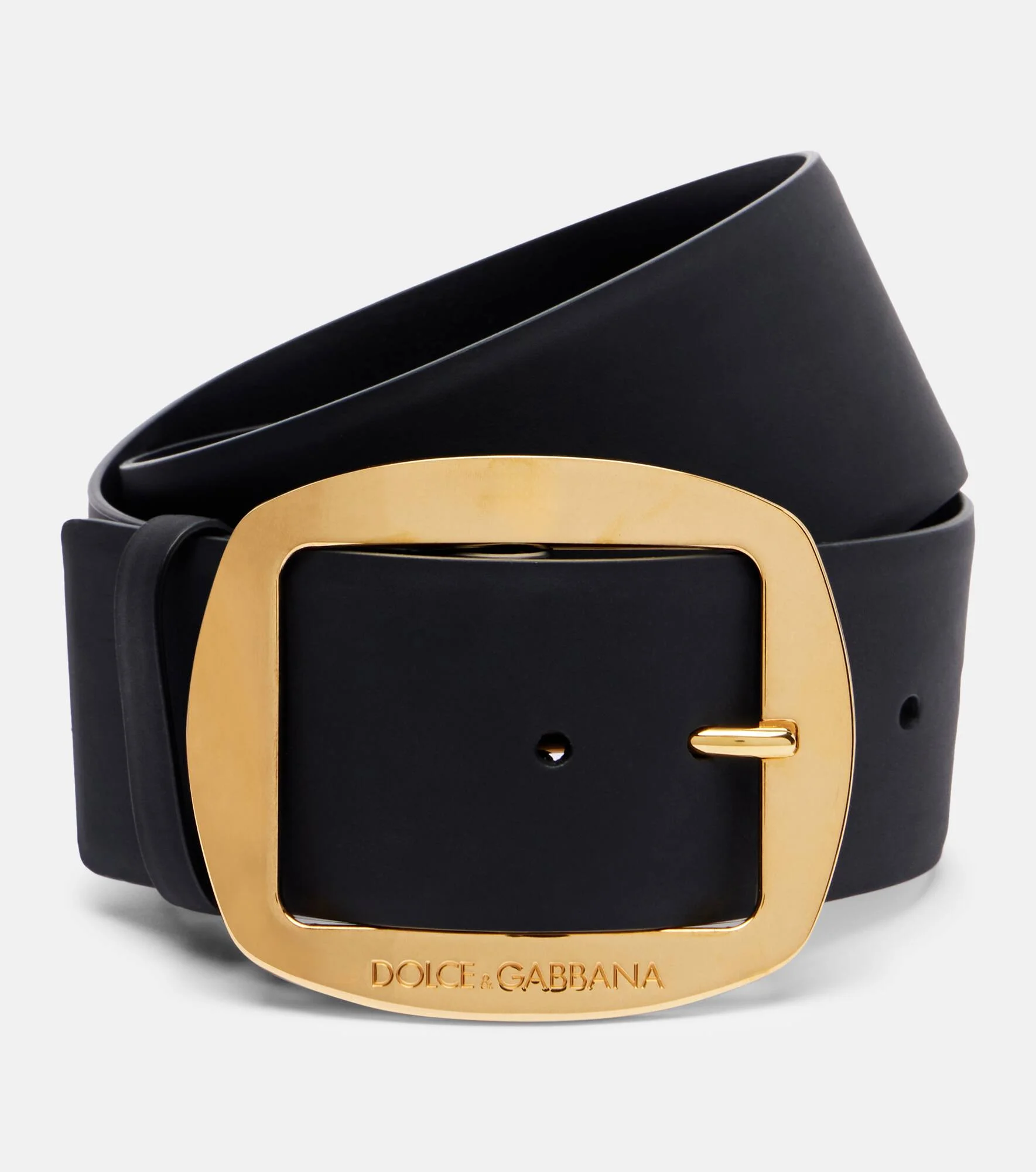 This leather belt from Dolce&Gabbana exudes understated elegance, making it a versatile accessory for both tailored and casual ensembles. The design features an oversized gold-toned buckle closure for a refined, timeless finish. Product Details - Material: calf leather - Lining: calf leather - Made in Italy - Designer color name: Nero - Item color: black - Hardware color: gold - Closure: buckle fastening - Includes: dust bag, box - Item number: P01082803 Size & Fit - Length 65,5/75.5cm-26/297" - Width 6cm-2.5" - Buckle width 9cm-3.5"
