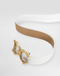 Belt in calfskin with baroque DG logo in metallic ABS. • Opening 50 mm – 2 inches – in height • Logo buckle in metallic ABS • Clip closure under buckle •Nickel-free buckles and hardware • Made in Italy Care And Details External composition: 100% Calfskin Internal composition: 100% Calfskin