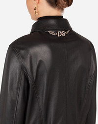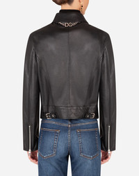 Cool and modern, the leather biker jacket is now a go-to piece in every woman’s wardrobe. Coming in soft lambskin nappa, this will be a versatile piece that will adapt to a range of looks: • Lapel collar • Long sleeves with zipper • Pockets with exposed zippers • Stretch silk satin lining • Front zipper fastening • The piece measures 51 cm - 20.1 inches from the rear collar seam on a size IT 40 • The model is 175 cm - 68.9 inches tall and wears a size IT 40 • Made in Italy Care And Details External composition: 100% Lambskin