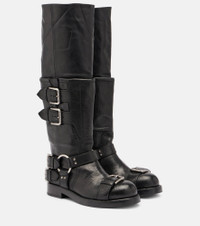 Sicilian culture is on display in Dolce&Gabbana's aesthetic, with bold styles inspired by the brand's Italian heritage. Crafted from leather, these knee-high boots embrace a modern style with their silver-toned buckles. Product Details - Upper: horse leather - Lining: leather - Sole: leather insole, leather and rubber sole - Toe shape: round toe - Made in Italy - Includes: shoe box, dust bag - Designer color name: Black - Item color: black - Hardware color: silver - Closure: buckle fastening - Item number: P01127824 Size & Fit - True to size - European sizes - 3cm-1" heel (size EU 38) - 2cm-1" platform (size EU 38) - 44cm-17.5" shaft height (size EU 38) - 38cm-15" shaft width (size EU 38) - shaft width measured on largest part of boot
