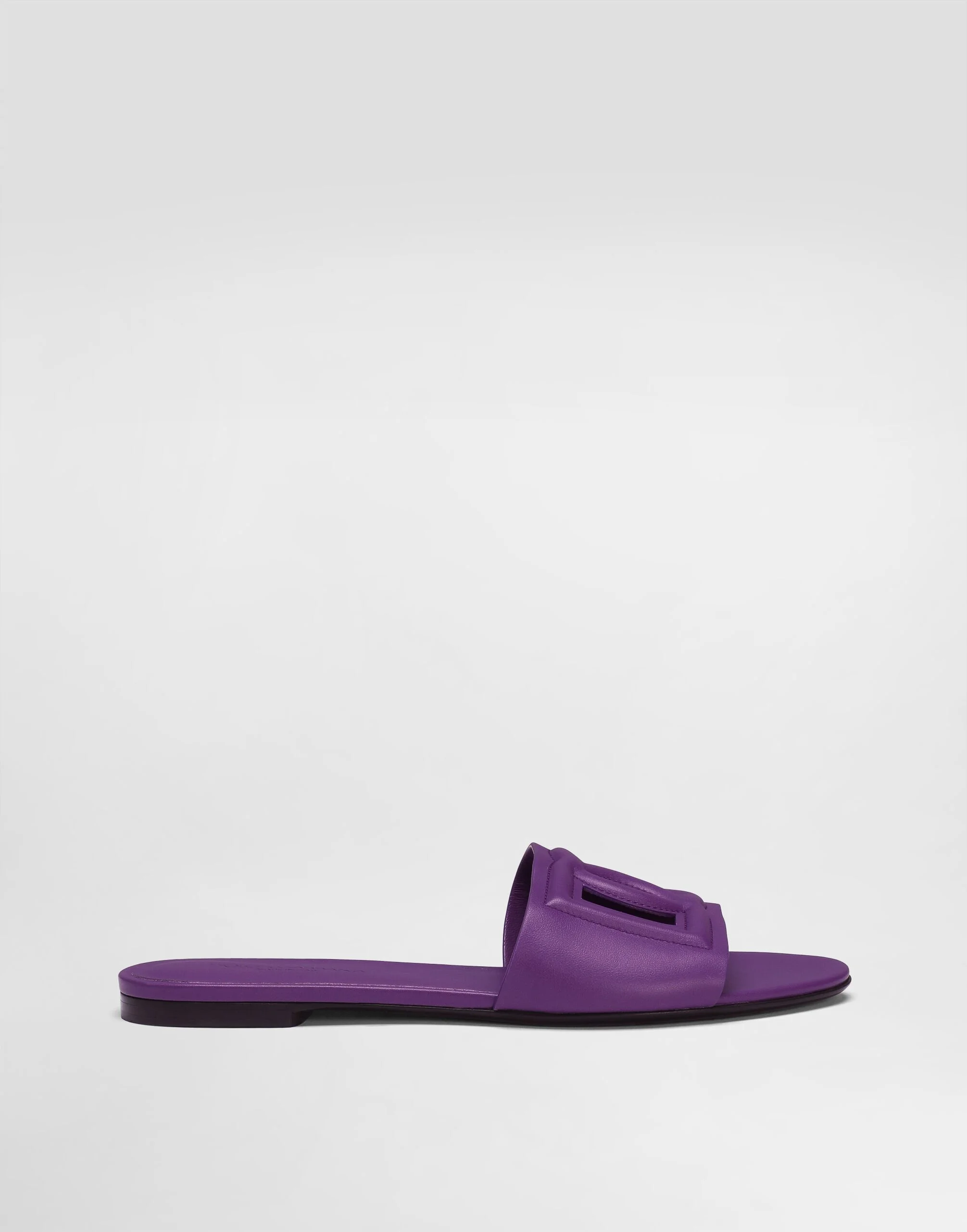 These slides in smooth Calfskin offer a sleek and sophisticated design, perfect for completing a formal look with a touch of sophistication. Slides in smooth Calfskin: • Purple • Shape Bianca • Leather sole with DG logo • Leather open toe insole with fire stamp • Item equipped with a black cotton bag and black embossed box • Made in Italy External Composition: 100% CalfskinInternal Composition: 52% Calfskin, 48% Lambskin