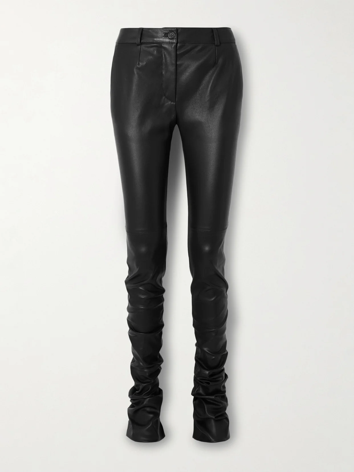 Dolce & Gabbana's pants are part of the label's Fall '25 collection which draws on the cosmopolitan style of of 'cool girls'. Worn on the runway, they have been made in Italy from smooth stretchy leather for a skinny fit and have particularly slouchy, elongated hems.