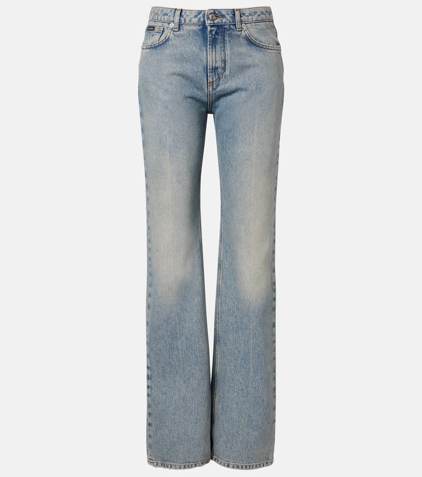 Give a vintage twist to your wardrobe with these Dolce&Gabbana jeans. Cut to a straight-leg silhouette, the design is detailed with a metal logo plaque on the back pocket and a leather patch on the waist. Product Details - Material: 100% cotton - Care instructions: machine wash at 30 degrees - Made in Italy - Color: blue - Designer color name: Variante Abbinata - Closure: zipper fly, button fastening - Pockets: five pockets - Belt loops - Item number: P01122835 Size & Fit - True to size - Non-stretchy fabric - Flared - Low-rise - The model seen in the picture is 178cm-5'10" and wearing a size IT 40