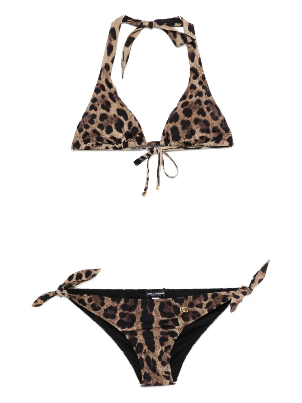 leopard-print tie bikini Highlights - Light brown - Leopard print - Triangle cup - Tie fastening - Brief bottoms - Tie side fastening - Be mindful to try on swimwear over your own garments. Made in Italy Composition Polyamide 80%, Elastane 20% Washing instructions Hand Wash