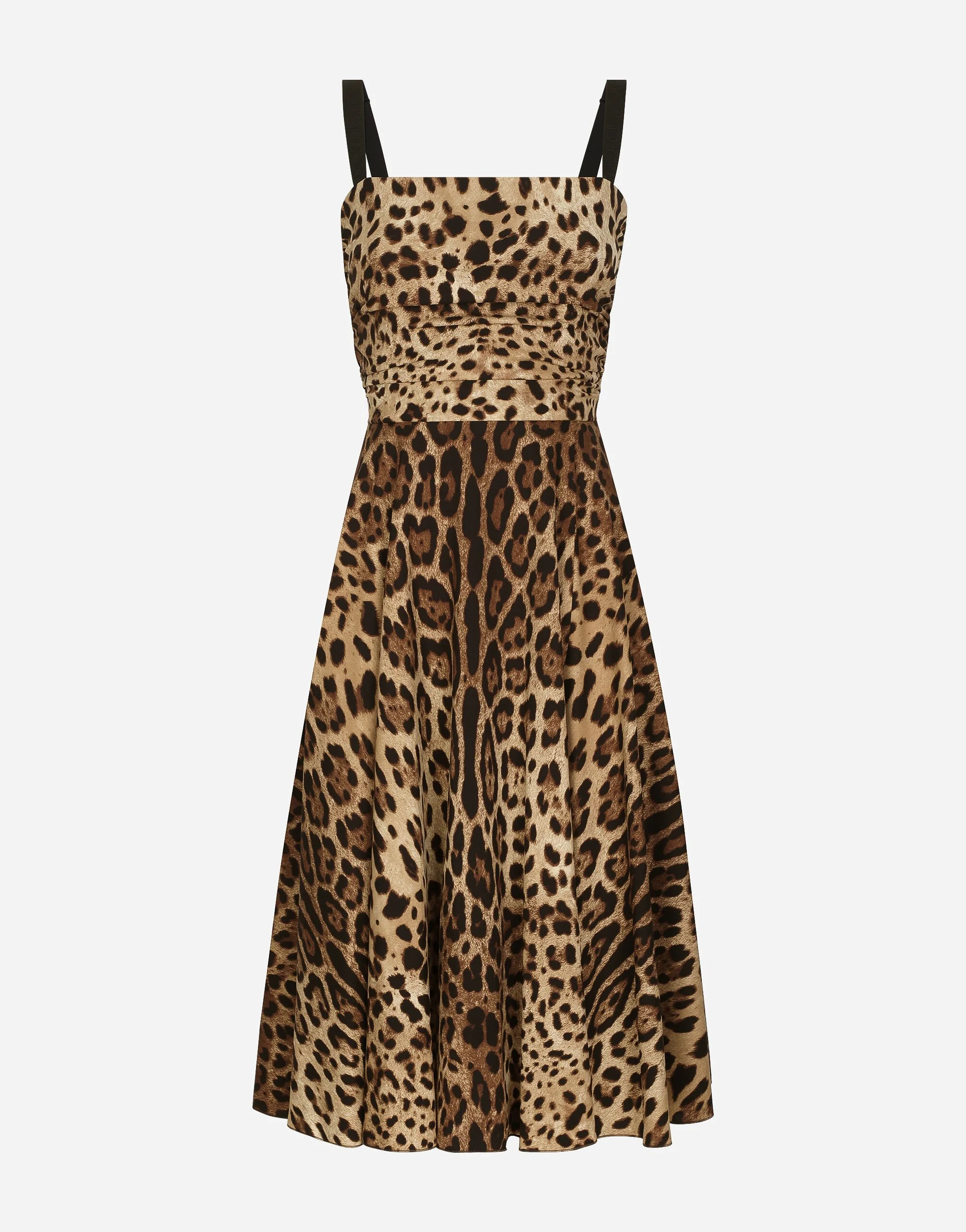 Leopard-print stretch silk charmeuse calf-length wrap dress: • Animal print • Straight neckline • Sleeveless with elasticated adjustable straps with logo • Stretch silk crepe de chine lining on bodice • Invisible zipper and hook-and-eye fastening on the back • The piece measures 72 cm from the waist down on a size IT 40 • The model is 175 cm tall and wears a size IT 40 • Made in Italy The difference in the print placement that you may find on this product is a feature of Dolce&Gabbana’s “Handmade” pieces. A detail that makes every garment or accessory unique and exclusive. Care And Details External composition: 95% Silk 5% Spandex Internal composition: 91% Silk 9% Spandex