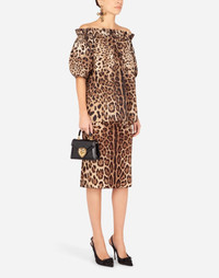 Leopard-print charmeuse calf-length pencil skirt