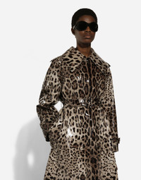 In the “WOMAN SS 24” Collection, the imagery of old Sicily interacts with the masculine, with sensual shapes, lace, nude tones and delicate overlays, to create pieces that move amid clean silhouettes, the elegance of the 1960s, the contrasts of black and white and luxurious textures. The designers are reworking their signature style and their iconic Sicilia black color to convey an aware, seductive and confident Sicilian WOMAN who is imbued with sensuality. Leopard-print coated satin trench coat: • Leopard print • Notched lapels • Long sleeves • Regular fit • Silk satin lining • Button fastenings and belt • The piece measures 130 cm from the center back on a size IT 40 • The model is 175 cm tall and wears a size IT 40 • Made in Italy External composition: 97% Polyester 03% Spandex Internal composition: 100% Silk