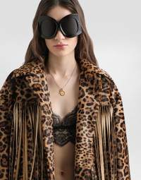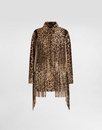 In the Fall/Winter 2025 Fashion Show Collection, shearling jackets, in fur-free versions, reveal slip dresses and create contrast' plays while denim welcomes fabric or Leo print inserts. Sweatshirts are the result of long experimentation with volumes. Evening looks become precious thanks to dresses with special embroideries and luminous touches of sequins and crystals. Sheepskin inserts also unite hats, shoes, and bags, including those with pockets. This jacket is a bold and trendy piece that is ideal for those who like to stand out in style. The fringes and Leopard-print add a wild and sophisticated touch, perfect for an urban and contemporary look. Leopard-print fringed jacket: • Multi-colored • Sleeves with slit • Patch pocket at the waist with flap • Buttonhole and button fastening • Lined with quilted lining for body and sleeves • The model is 175 cm tall and wears size 40 IT • Made in Italy The difference in the print placement that you may find on this product is a feature of Dolce&Gabbana’s “Handmade” pieces. A detail that makes every garment or accessory unique and exclusive. External Composition: 90% Calf, 10% Lamb Internal Composition: 100% Silk