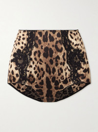 Lace-trimmed leopard-print silk-blend satin briefs Leopard print