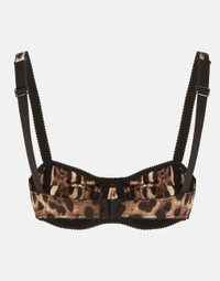 Leopard-print satin balconette bra