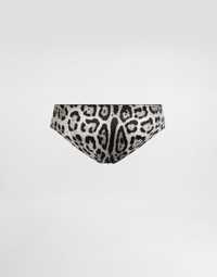 The Everyday Women's Collection reimagines contemporary daily wear with Dolce&Gabbana's signature style codes. Iconic fabrics mix with standout details like embroidered flowers, crystals, and jewel buttons, infusing elegance into every look. Gray animal print accented with green and purple, hyper-geometric jewelry, voluminous shapes and transparencies add unique touches. Men's tweed is reinvented with graphic twists, creating distinctive pieces that reflect refined sensuality. Leopard-print stretch silk satin panties: • Leopard print • Elasticated leg openings on the front only • Regular fit • Made in Italy Given the product characteristics, unfortunately some items in the underwear category cannot be returned. For more information, please consult the Returns and Refunds section. The difference in the print placement that you may find on this product is a feature of Dolce&Gabbana’s “Handmade” pieces. A detail that makes every garment or accessory unique and exclusive. External composition: 93% Silk 7% Spandex