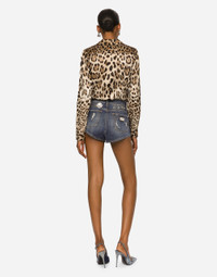 Leopard-print satin shirt: • Shirt collar • Long sleeves • Slim fit • Button fastenings with branded bottom edge • The piece measures 65.5 cm from the rear collar seam on a size IT 40 • The model is 175 cm tall and wears a size IT 40 • Made in Italy The difference in the print placement that you may find on this product is a feature of Dolce&Gabbana’s “Handmade” pieces. A detail that makes every garment or accessory unique and exclusive. Care And Details External composition: 100% Silk