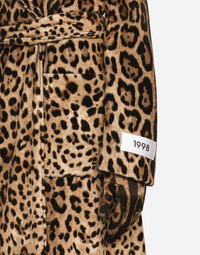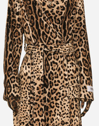 Leopard-print terrycloth coat with belt and the Re-Edition label