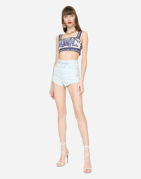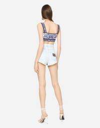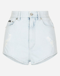 These comfortable, high-waisted shorts come in faded denim and represent a contemporary take on a great summer classic. The micro-ripped piping will add boldness to your looks: • High-waisted • 5 pockets • Branded metal and leather plate • Branded label on the coin pocket • Inner leg: 3 cm • Curved hem: 30 cm • Zipper and branded metal button fastening • The model is 175 cm tall and wears a size IT 40 • Made in Italy Care And Details External composition: 98% Cotton 2% Spandex