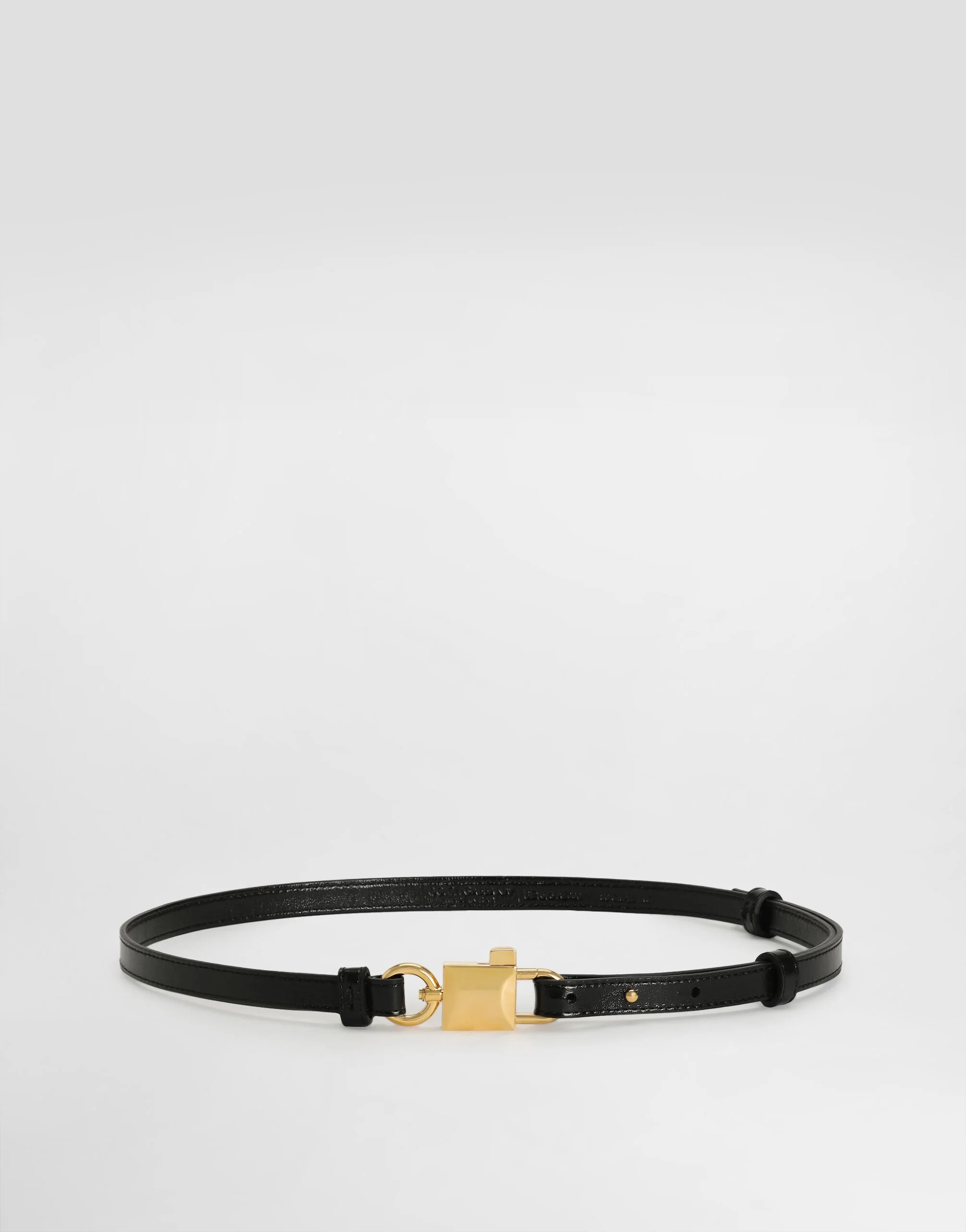 This Calfskin belt is a versatile and timeless accessory, perfect for adding a touch of elegance to any outfit. Calfskin belt: • Black • The belt strap is 15 mm in height • Padlock carabiner buckle • Vintage brass plating • Internal customization: fire stamp • Internal packaging: logo bag • External packaging: logoed box • Made in Italy External Composition: 100% Calfskin Internal Composition: 100% Calfskin