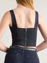 Picot-trimmed Denim Bustier Top