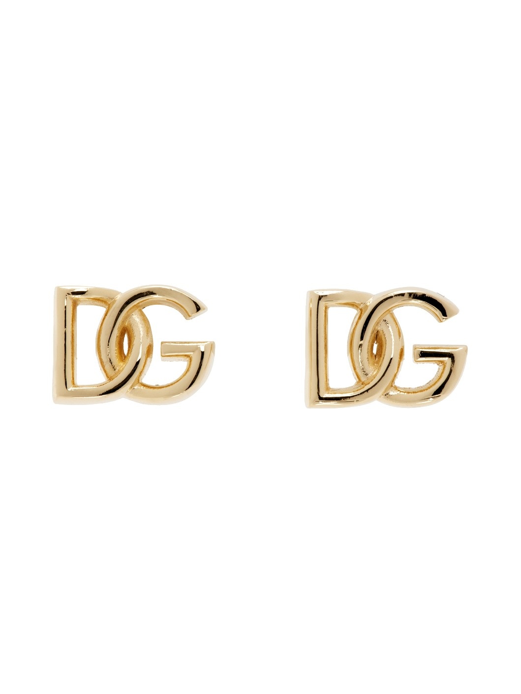 Pair of stud earrings in gold-tone brass. · Logo hardware at face · Post-stud fastening · H0.25" x W0.5" Supplier color: Gold