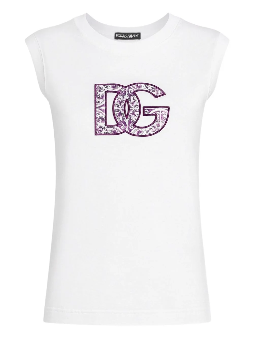 cotton t-shirt Highlights - White - Crew neck - Cap sleeves - Straight hem - Applique logo Made in Italy Composition Cotton 100% Washing instructions Read Manufacturer Guidelines