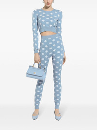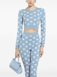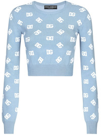 logo print cropped knit top Highlights - Light blue - Crew neck - Cropped - All-over floral print - Ribbed cuffs and hem - Long sleeves Made in Italy Composition Viscose 83%, Polyester 17%