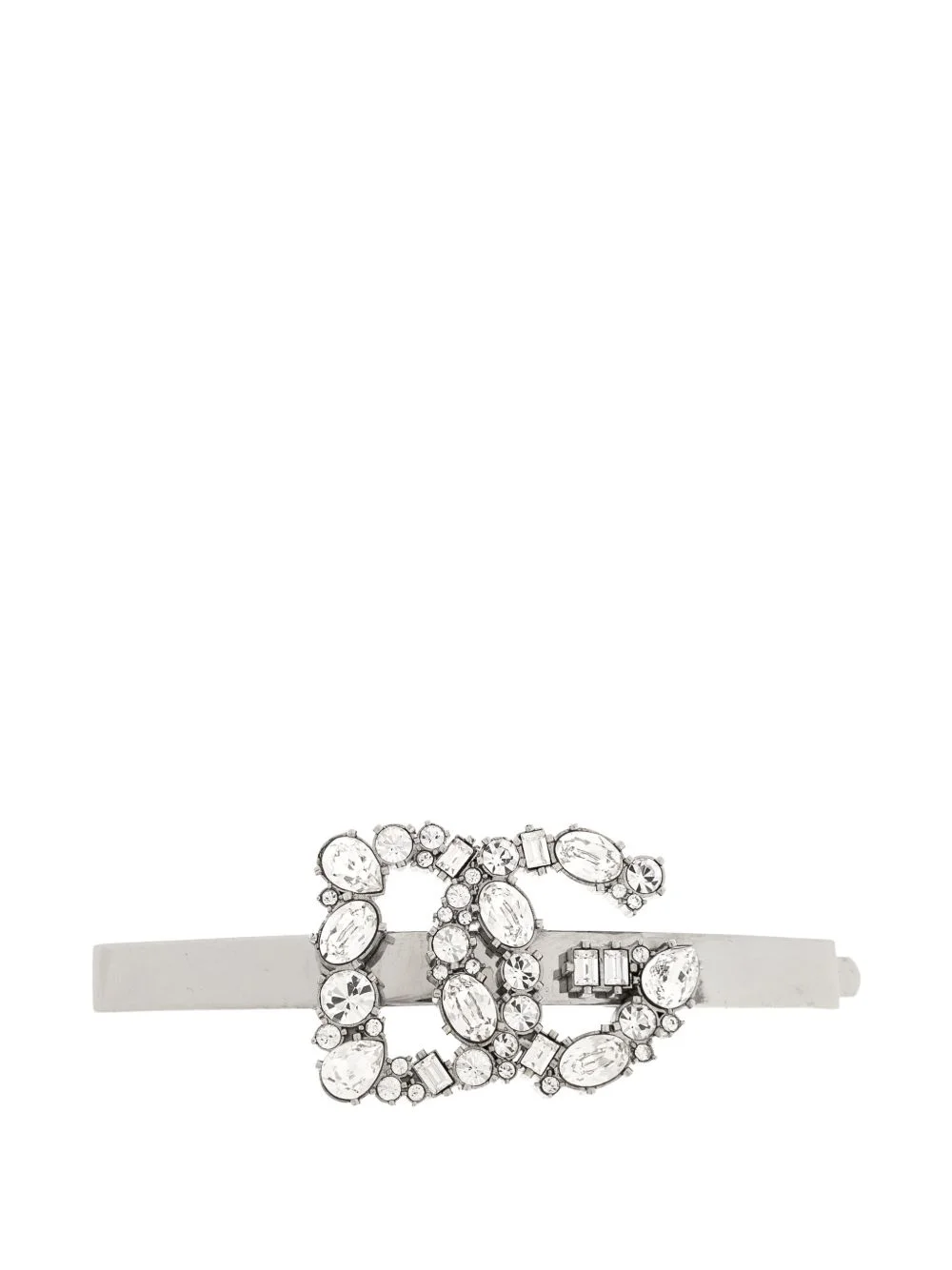 logo-embellished hair clip Highlights - Silver-tone - Embellished - Logo hardware - Slip-on style - Polished finish - Pin fastening Made in Italy Composition Brass 100%, glass 100%