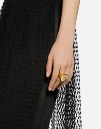The Dolce&Gabbana Jewelry Collection is filled with unique pieces boasting great craftsmanship. Contemporary accessories with original and exclusive DG logo details, featuring different plated finishes, will be perfect for finishing off any look with great style. Heart ring with embossed DG logo: • Gold • Heart measurement: 2.5 cm • Nickel-free and hypoallergenic materials • Engraved logo • Made in Italy Composition: 100% Brass