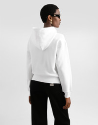 This hoodie is perfect for a casual and comfortable look. The embroidery on the front adds a touch of unique style to the garment, ideal for cooler days. Cotton sweatshirt with embroidery: • White • Hoodie • Hip pockets • The model is 175 cm tall and wears size 40 IT • Made in Italy External Composition: 100% Cotton