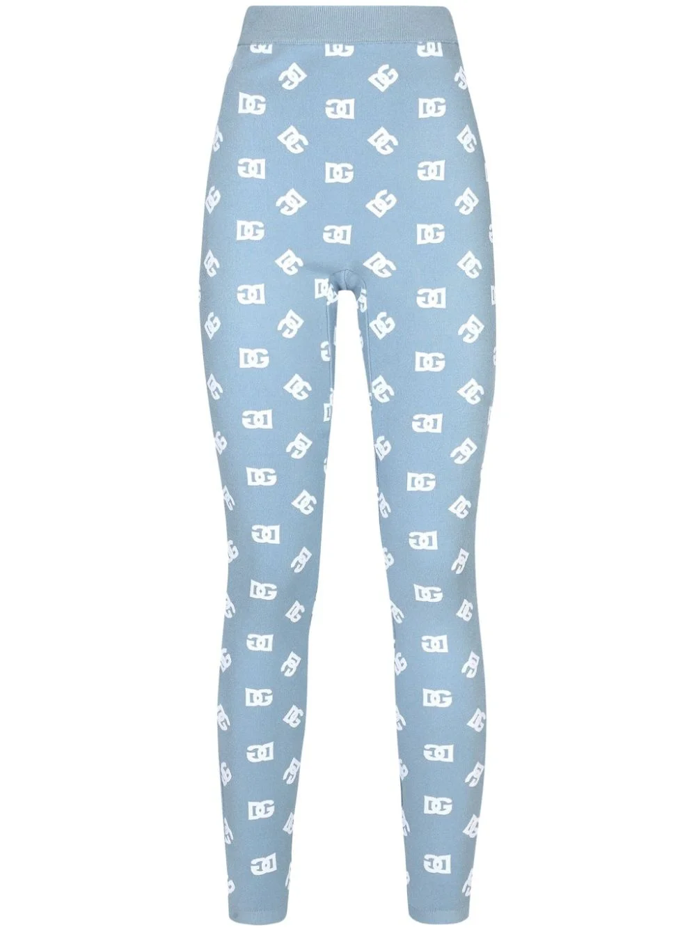 DNA logo embroidered leggings Highlights - Light blue - Stretch-design - Elasticated waistband - All-over logo embroidery - Ribbed waistband - Ribbed ankles Made in Italy Composition Viscose 83%, Polyester 17%