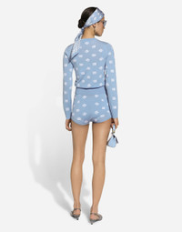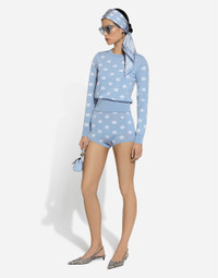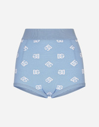 In the FW 24/25 DNA Collection, the rules of classic tailoring have been reworked with an innovative feel. New raschel weave techniques feature on micro-jackets and coats, and original textures are woven on trench coats, skirts, jacquard suits and shirts. The color palette made up of Nero Sicilia black, Milky White and Ocean Blue is also original. The iconic bags in fine nappa leather and “Pyton FC Machine” finish off the looks. Wool and silk high-waisted panties with DG logo inlay: • Light blue • 18-gauge knit • Dense hand • Ribbed waistband and hem • Form fitting • The model is 175 cm tall and wears a size IT 40 • Made in Italy External composition: 91% Virgin Wool 9% Silk