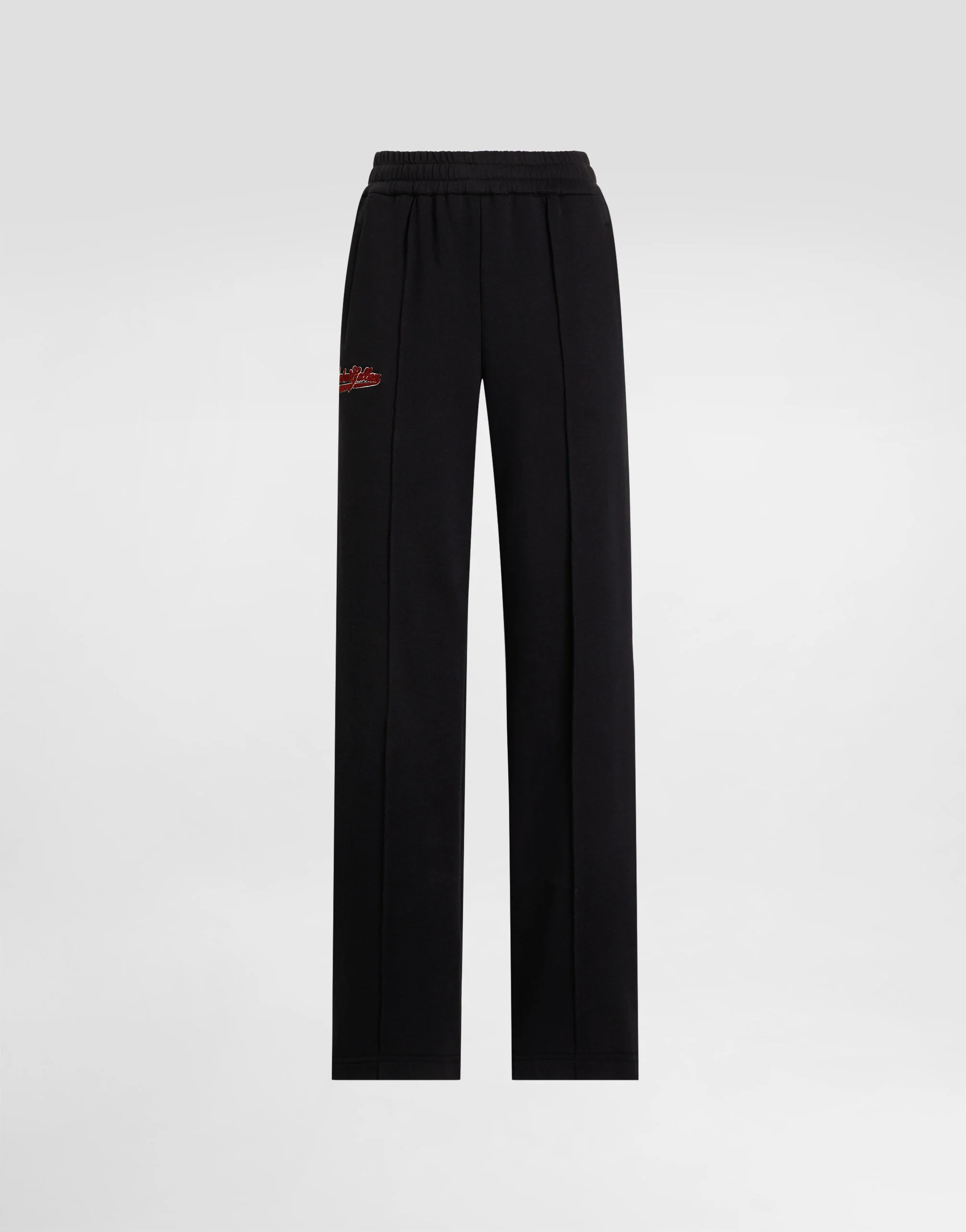 These fleece joggers are ideal for a casual and comfortable look, perfect for those who love a sporty but refined style. Fleece jogging pants with patch: • Black • Regular waist • Rib in the middle of the leg • Welt pockets • High waistband with elastic and internal drawstring • The model is 175 cm tall and wears size 40 IT • Made in Italy External Composition: 100% Cotton