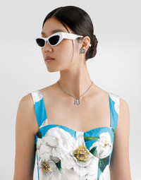 The Everyday Women's Collection reimagines contemporary daily wear with Dolce&Gabbana's signature style codes. Iconic fabrics mix with standout details like embroidered flowers, crystals, and jewel buttons, infusing elegance into every look. Gray animal print accented with green and purple, hyper-geometric jewelry, voluminous shapes and transparencies add unique touches. Men's tweed is reinvented with graphic twists, creating distinctive pieces that reflect refined sensuality. Fine link necklace with rhinestone-detailed DG logo: • Silver • Length: 60+5 cm • Clasp fastening • Nickel-free and hypoallergenic materials • Engraved logo • Made in Italy Composition: 90% Brass 10% Glass