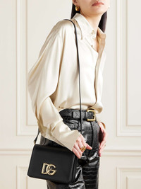 EDITORS'NOTES Dolce&Gabbana's bag is part of the '3.5' collection - each style is embellished with a gold-tone 'DG' logo. Defined by a small but structured shape, it's been made in Italy from smooth leather and has an adjustable strap, so you can wear it cross-body. Inside, you'll find an organized interior with slots for your cards and enough space for your phone, lipstick and mints. SIZE & FIT This item’s measurements are: - Min. Strap Length: 113cm / 44.5in - Length: 18.5cm / 7.3in - Max. Strap Length: 131cm / 51.6in - Height: 14cm / 5.5in - Width: 9cm / 3.5in DETAILS & CARE - Black leather (Calf) - Adjustable shoulder strap - Two internal compartments, two card sleeves - Unlined - Magnetic-fastening front flap - Comes with a dust bag