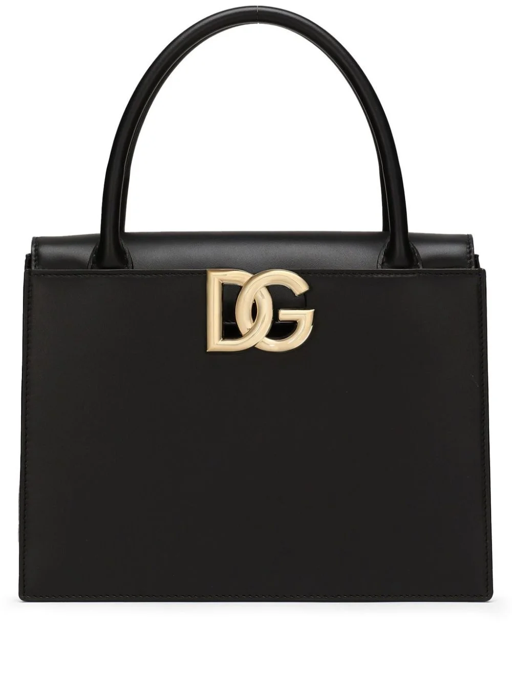 logo-plaque leather tote bag Highlights - Black - Calf leather - Gold-tone logo plaque - Two top handles - Magnetic fastening - Partitioned compartment - Internal zip-fastening pocket Made in Italy Composition Outer: Calf Leather 100% Lining: Calf Leather 95%, Viscose 5%