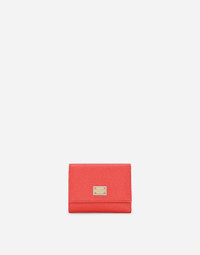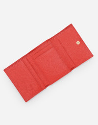 Practical and compact, this Dauphine calfskin continental wallet features the branded tag with two metal plating finishes. Its small size means it is perfect for the smallest bags. Dauphine calfskin French-flap wallet with branded tag: • Red • Front flap with branded tag and a concealed press-stud fastening • Four card slots • One bill compartment • Rear coin pocket with zipper • Measurements: H8.5 x W10.7 x P3 cm • Made in Italy External composition: 100% Calfskin Internal composition: 100% Viscose
