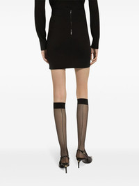 logo-plaque mini skirt Highlights - Black - Stretch-design - Silver-tone logo plaque - High waist - Rear zip fastening - Thigh-length - Straight hem Made in Italy Composition Viscose 71%, Polyester 15%, Polyamide 8%, Spandex/Elastane 6%