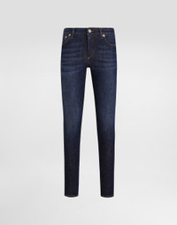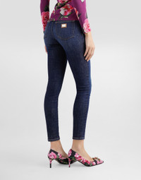 Dolce&Gabbana is conveying a new way of interpreting denim and does so by drawing inspiration from key words such as glamor and signature aesthetic, creating a collection that is perfect for every style and personality, merging femininity, modernity and originality. Skinny cotton denim jeans: • Blue • Low rise • 5 pockets • Branded label on the coin pocket • Branded metal and leather tag on the back pocket • Inner leg: 73 cm • Hem: 13 cm • Zipper and branded metal button fastening • The model is 175 cm tall and wears a size IT 40 • Made in Italy External composition: 98% Cotton 2% Spandex