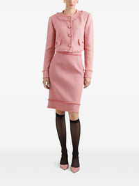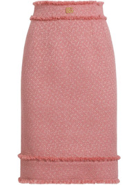 DNA logo plaque skirt Highlights - Powder pink - Concealed rear zip fastening - Fringe detailing Made in Italy Composition Outer: Virgin Wool 67%, Viscose 27%, Polyamide 6% Lining: Silk 92%, Spandex/Elastane 8% Washing instructions Read Manufacturer Guidelines