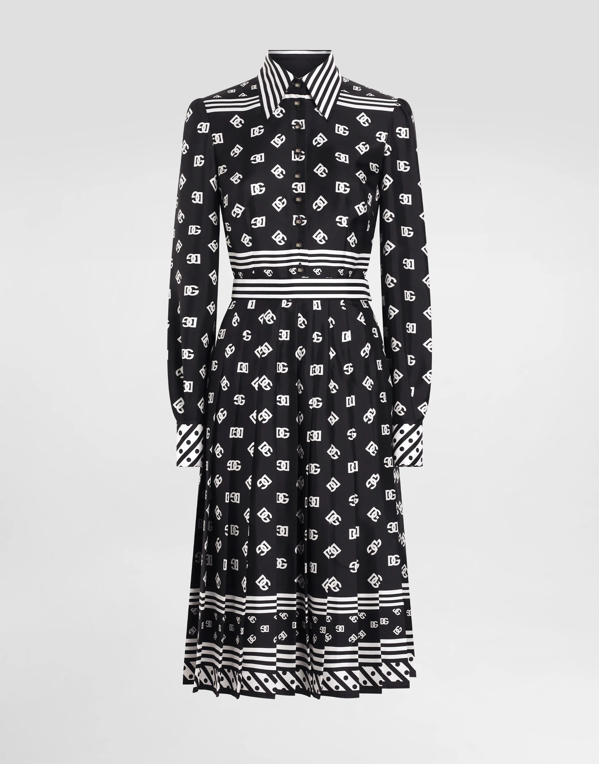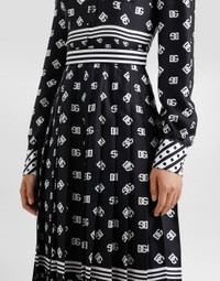 The Women’s DNA Collection is introducing a new side to femininity, which comes in shades of rose quartz, poised between sheerness and opacity, lightness and structure, formality and sensuality. Geometric Dolce Jackets, jacquard pajamas and floral brocade dresses intertwine with ultra-romantic designs. The DG print becomes an iconic statement, while Cordonetto lace and hints of Sicily Black embody the essence of a determined yet romantic femininity. Silk twill calf-length shirt dress with all-over DG logo scarf print: • Black • Shirt collar • Long sleeves • Front DG logo buttons • Unlined • Zip on left side • The piece measures 70 cm from the waist down on a size IT 40 • The model is 175 cm tall and wears a size IT 40 • Made in Italy External composition: 100% Silk