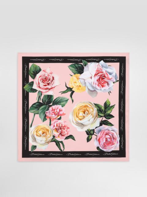 The Spring/Summer 2025 Warm Weather Collection is a vibrant ode to the beauty of the floral world, celebrating the elegance and vitality that lie at the heart of the brand’s DNA. Delicate, colorful bouquets dance across light dresses, skirts, trousers, and beachwear, infusing each piece with a sense of romance and freshness. Coordinated accessories, from scarves to headbands, add charm. An explosion of color and blooms, this collection captures the brand’s unmistakable spirit. Rose-print silk twill foulard: • Multi-colored • Hand-sewn hem • “Dolce&Gabbana” logo • Measurements: 70 x 70 cm • Made in Italy The difference in the print placement that you may find on this product is a feature of Dolce&Gabbana’s “Handmade” pieces. A detail that makes every garment or accessory unique and exclusive. External composition: 100% Silk