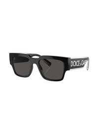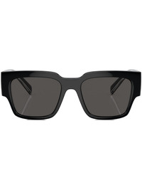 logo-print square-frame sunglasses black grey tinted lenses square frame logo print at the arm oversize arms curved tips These glasses come with a protective case. Made in United States Composition Plastic 100%, Polycarbonite 100% SIZE & FIT Measurement Arm Length 5.7 in(14.5 cm) Bridge Width 0.7 in(1.8 cm) Lens Diameter 2.04 in(5.2 cm)