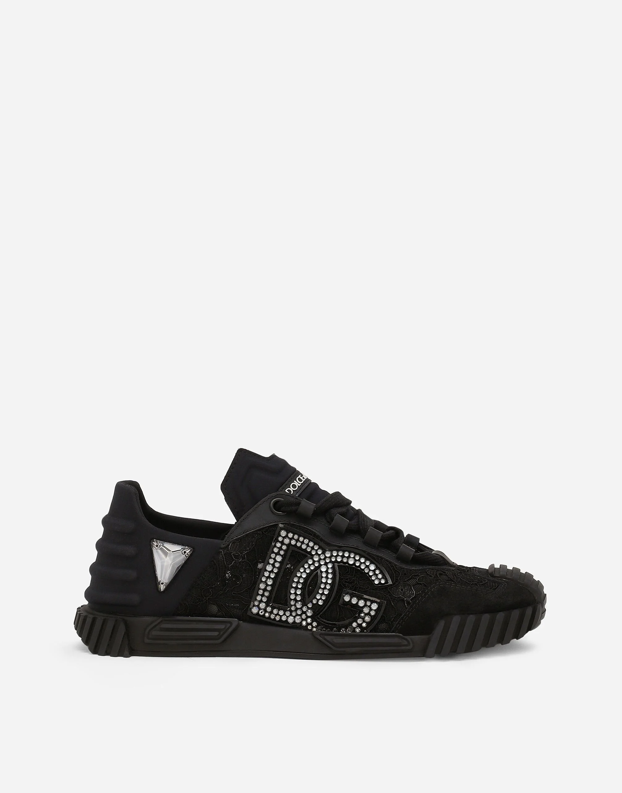 Understated and lightweight, the NS1 sneakers are coming with new details. Made from lace, they feature a super-flex rubber sole and the DG patch with fusible rhinestones. Lace NS1 sneakers: • Black • Flat laces • Calfskin footbed with branded label • Rubber bottom assembly and branded sole • Item comes with a branded dust bag • Made in Italy External composition: 40% Cotton 35% Viscose 10% Polyamide 5% Calfskin 5% Spandex 5% Silicone Internal composition: 90% Lambskin 10% Goatskin