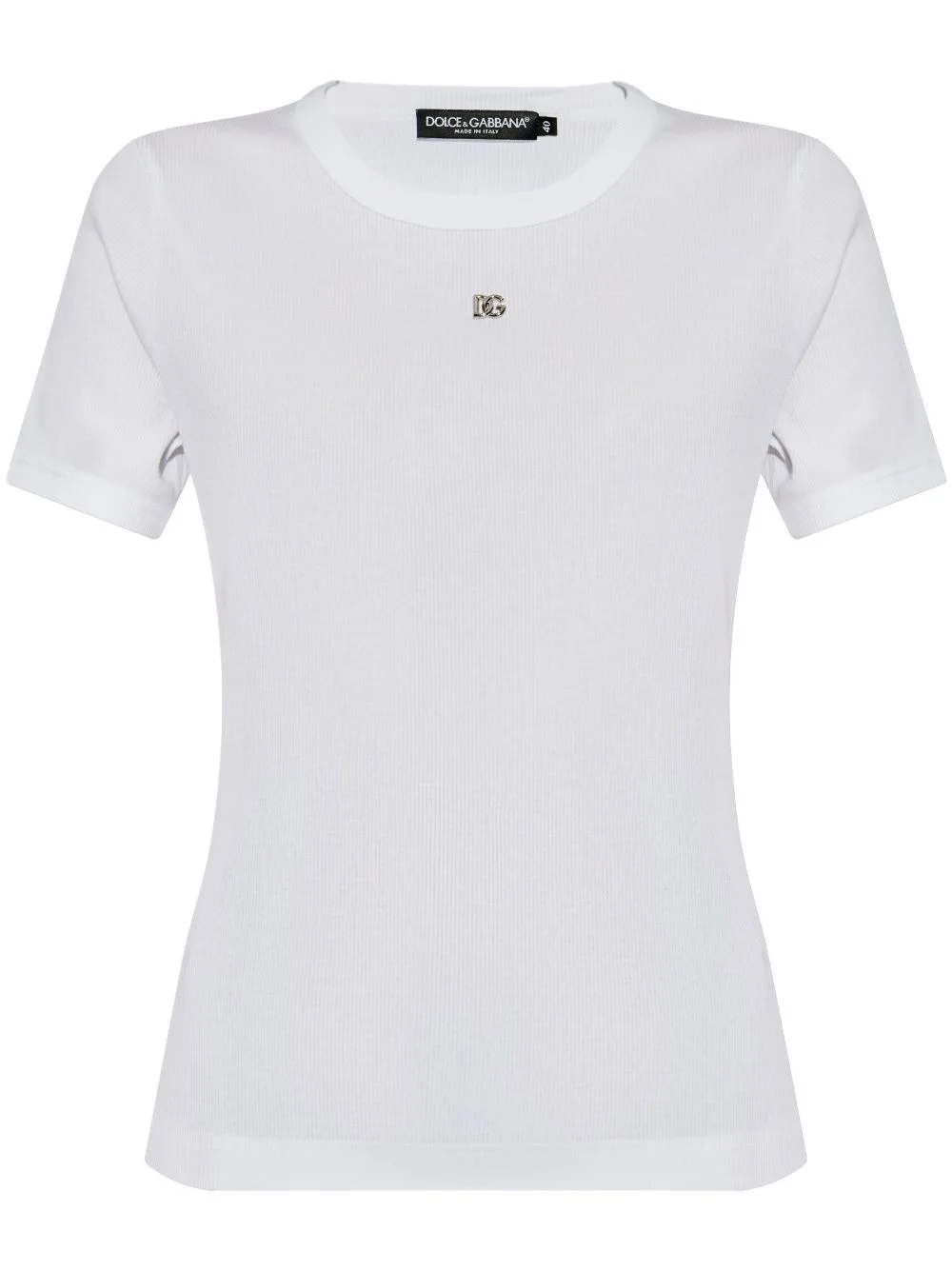 logo-plaque T-shirt Highlights - White - Ribbed knit - Round neck - Short sleeves - Straight hem Made in Italy Composition Cotton 100%