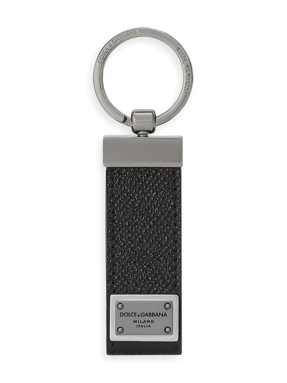 logo-tag leather keyring Highlights - Jet black - Calf leather blend - Pebbled texture - Silver-tone hardware - Silver-tone logo plaque - Split-ring fastening Made in Italy Composition Calf Leather 60%, Zamak 25%, Steel 15%