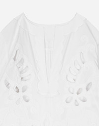 The Italian summers of the 1960s, the candid purity of white, the sophisticated elegance of the jet set of that era. The imagery of the FW24/25 Capri Collection encapsulates all this flawlessly. The pieces range from floaty poplin silhouettes or sack-style dresses and skirts, to brocade outerwear and floral-inlay fabric shirts. The iconic bags – the Logo Bag, the Sicily Bag and the Dolce Box – complement the looks, while the shoes come embroidered with designs inspired by the crystal-clear sea of Capri. Long cotton poplin caftan with cut-out detailing: • White • Keyhole neck • Long sleeves • Lined • The piece measures 115 cm from the waist down on a size IT 40 • The model is 175 cm tall and wears a size IT 40 • Made in Italy External composition: 100% Cotton Internal composition: 100% Cotton