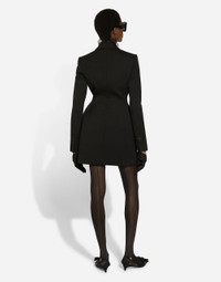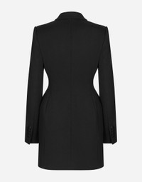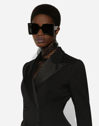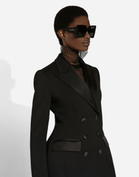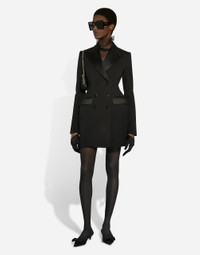 Menswear and womenswear mix and mingle, influencing one another and creating tailoring that embraces endless nuances, from the boldest to the most sophisticated, to define the rules of eternally classy femininity. A monochrome retelling in Nero Sicilia black, embellished by golden touches and rhinestones, adorning clean lines and incorporating stylish fabrics such as velvet, chiffon, lace, organza, and unique mesh details, the expression of authentic beauty for dresses, shirts and accessories. Long double-breasted Dolce tuxedo jacket in stretch wool: • Black • Peak lapels • Long sleeves • Flap pockets • Padded hips • Stretch silk satin lining • Satin-covered button fastenings • The piece measures 83 cm from the center back on a size IT 40 • The model is 175 cm tall and wears a size IT 40 • Made in Italy External composition: 83% Virgin Wool 12% Silk 03% Polyester 02% Spandex Internal composition: 92% Silk 08% Spandex