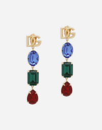Since the very beginning, the style of the Sicilian Carretto carts has been an indelible part of Dolce&Gabbana. The amazement that these marvelous, beautiful works of art inspire when you first see them led our designers to put a fresh spin on the vision behind them. The colors are reworked through the eyes of the provocative and experimental artwork of the ‘60s, resulting in a psychedelic take on the classic Carretto style. Youthful and sophisticated, the resulting mix is breathtaking in its colors. Long earrings with DG logo and rhinestones: • Multi-colored • Clip-on fastening • Nickel-free and hypoallergenic materials • Engraved logo • Made in Italy Composition: 70% Brass 30% Glass