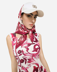 Against a striking white base, evoking the dazzling sunlight shining on houses facing the sea, the ‘calligraphic-naturalistic’ decoration – here in deep fuchsia – adorning Majolica pottery from Caltagirone is the inspiration for the FW 23-24 collection. The two-tone color palette takes us on a virtual journey of discovery where we find iconic and authentic silhouettes, made even more special by single, non-recurring, placed prints that celebrate the originality of handmade pieces, lightness and femininity. Long earrings with two-tone DG multi-logo: • Silver • Clip-on fastening • Nickel-free and hypoallergenic materials • Engraved logo • Made in Italy Composition: 95% Brass 5% Enamel